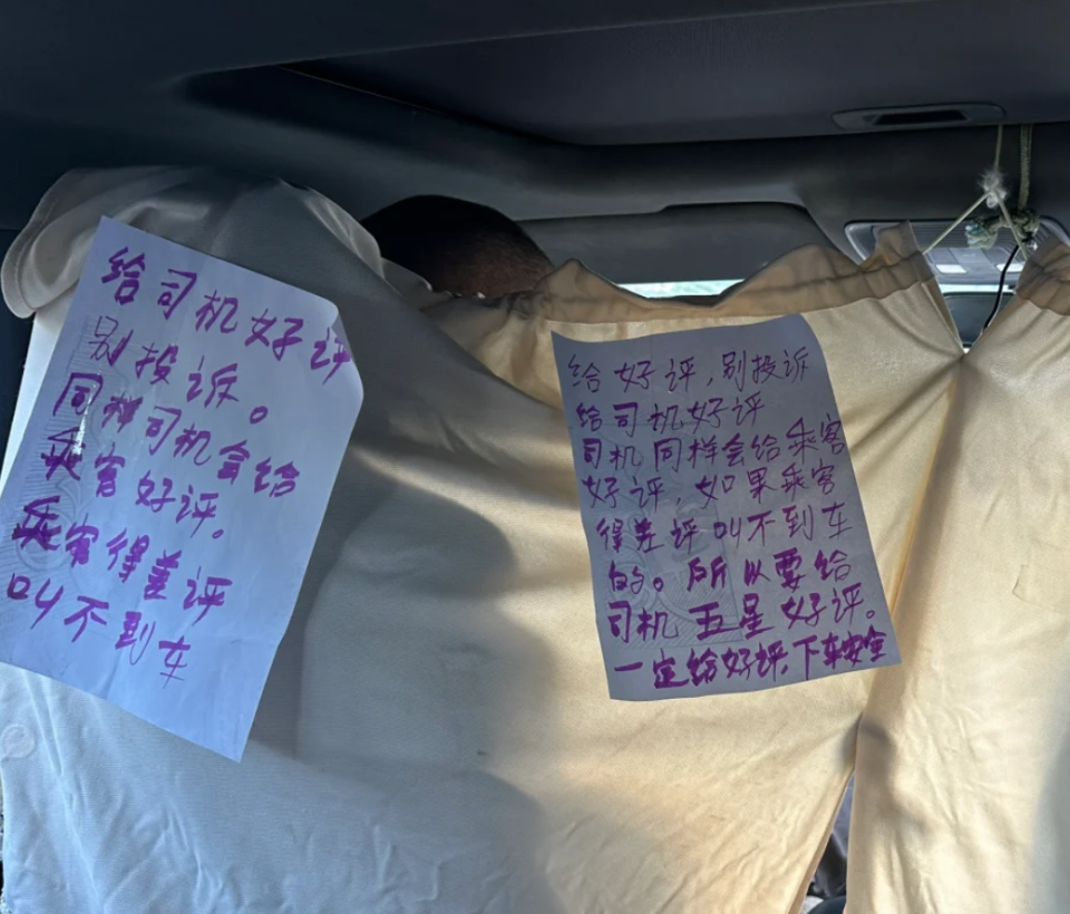 无独有偶,此前据媒体报道,有网友发帖称自己假期在杭州打网约车观看演唱会时,网约车前排座椅靠背张贴了一张“差评者得癌症”的手写纸条,让自己的父母感到非常不舒服。